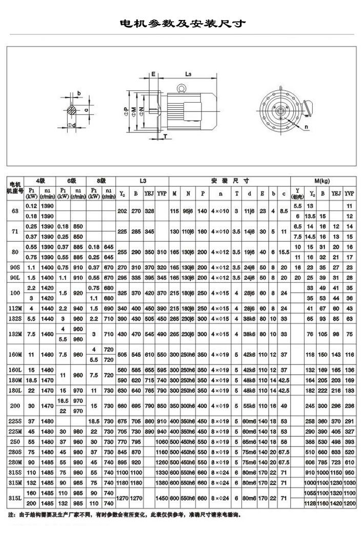 電機外形尺寸及參數(shù)