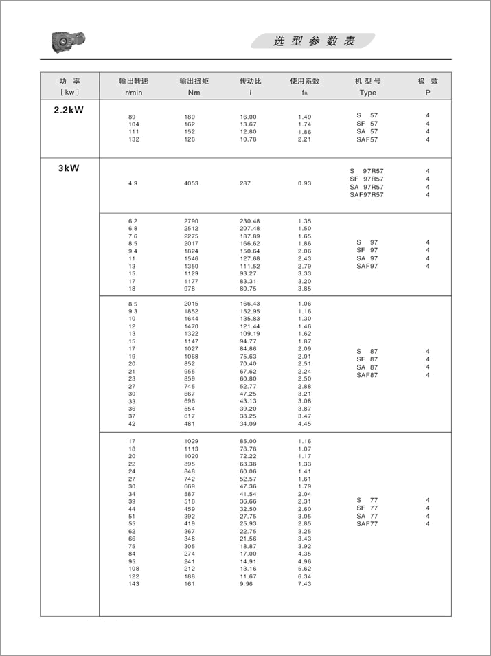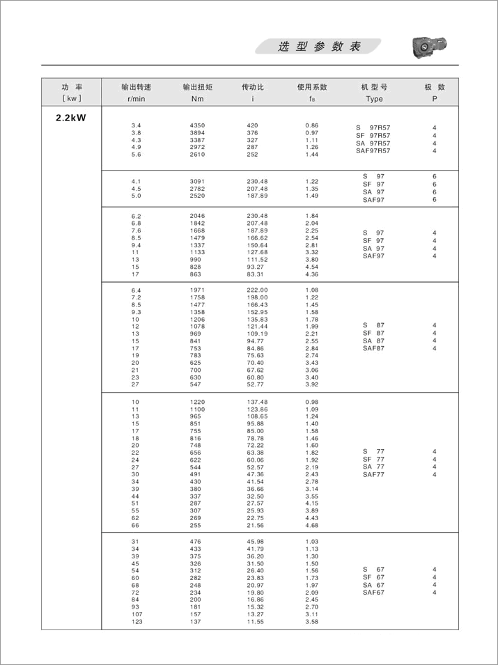上一篇:S斜齒輪蝸桿減速機(jī)選型參數(shù)表3KW