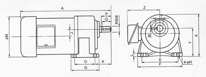 GH三相臥式齒輪減速電機(jī)外型尺寸圖