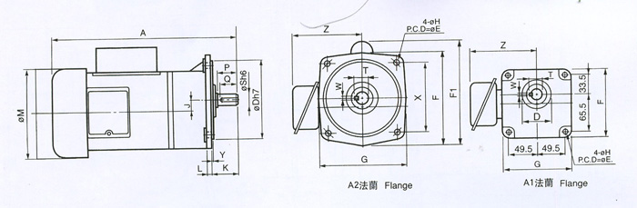 GV單相立式齒輪減速電機外型尺寸圖